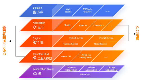 创新奇智选择专精特新路线,基于在AI制造业的多年积累,在业内领先推出了面向工业制造领域的百亿参数量级行业大模型“奇智孔明AInnoGC工业大模型”,具有行业化、轻量化、多模态的特点,是一款更懂工业制造的行业大模型。